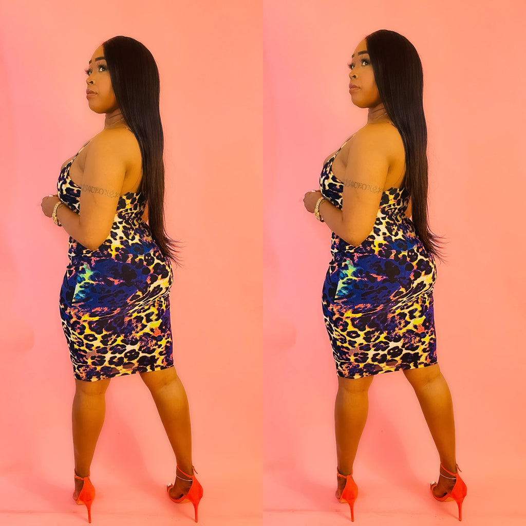 Play Hard Multi Color Leopard Print Skinny Strap Midi Dress