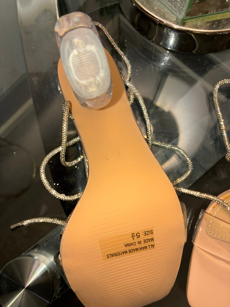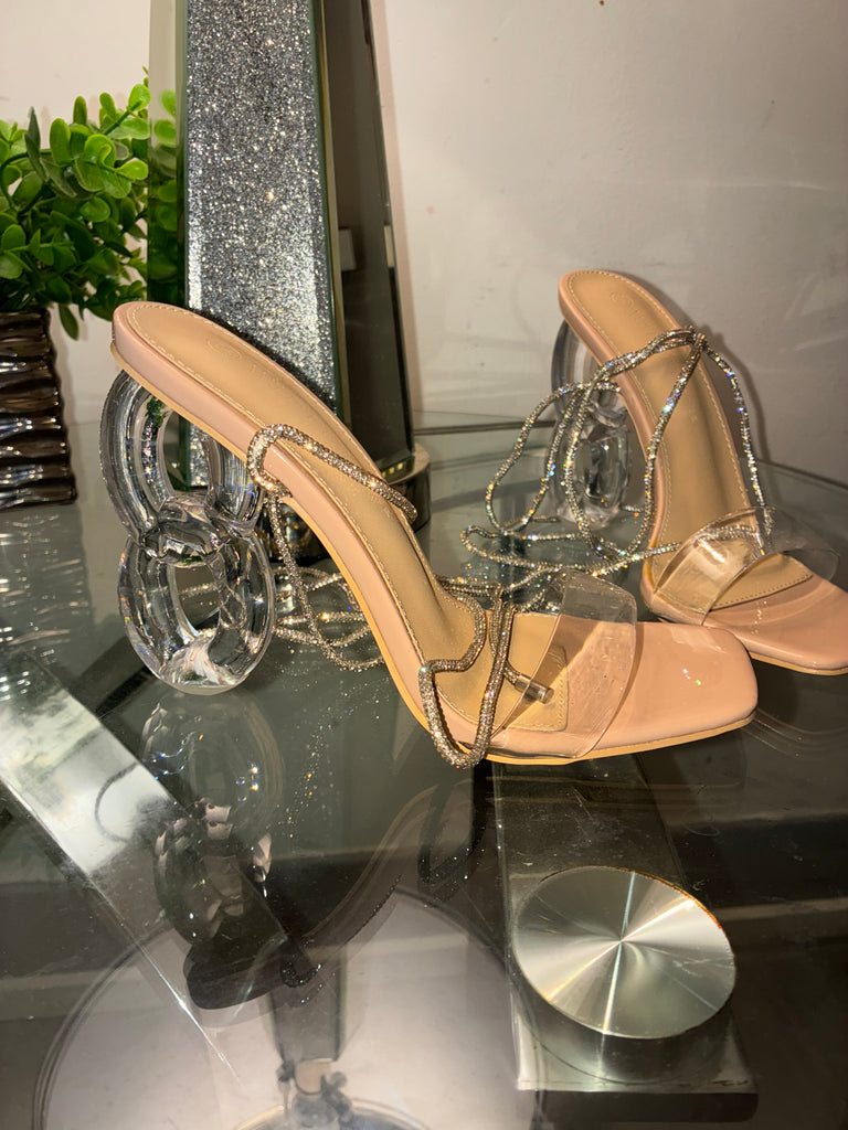 Open Toe Transparent Clear Desire Link Statement Heel (Nude)