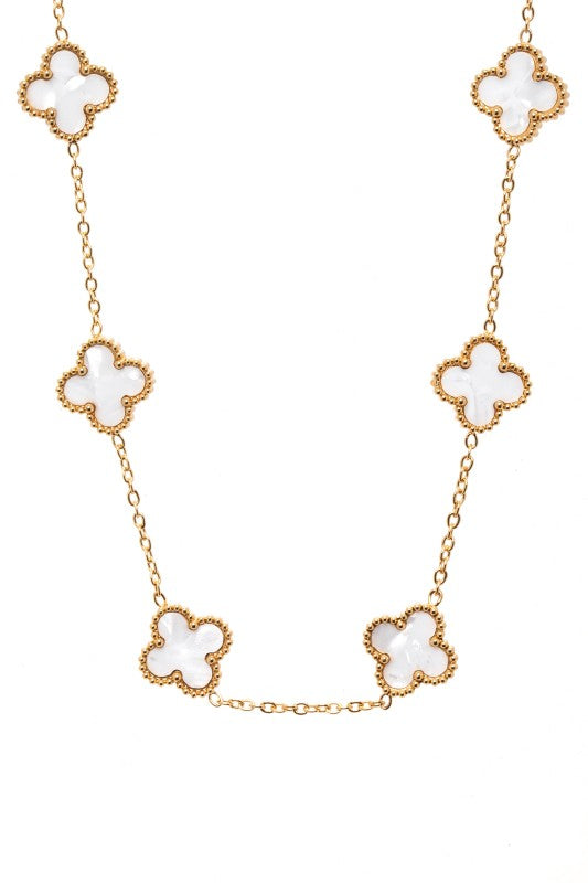 Luxe Clover Station Gold-Plated & White Charm Necklace