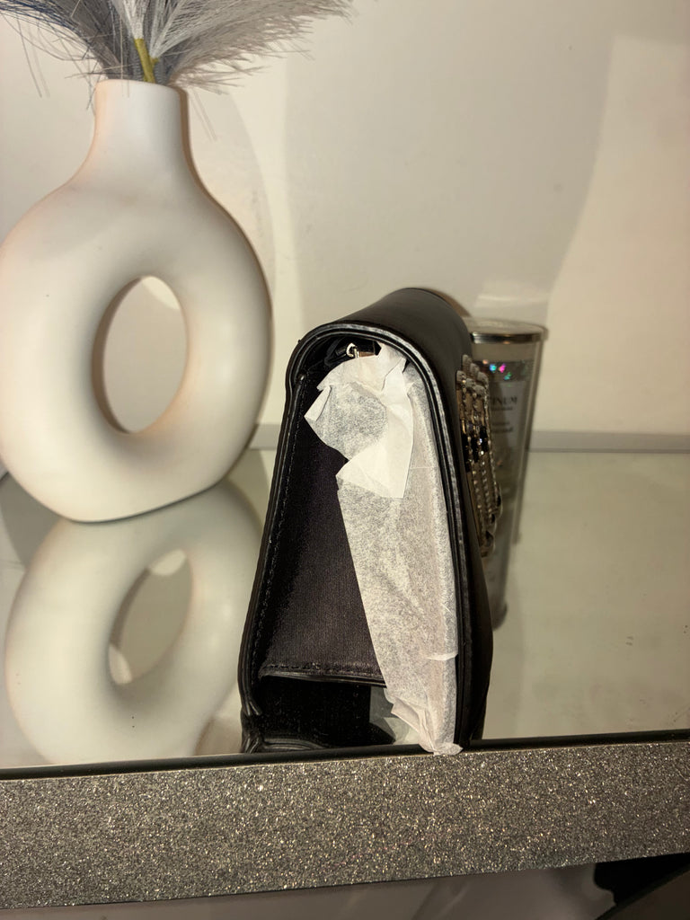 Part Of The Moment Black Rhinestone EmblemClutch Handbag